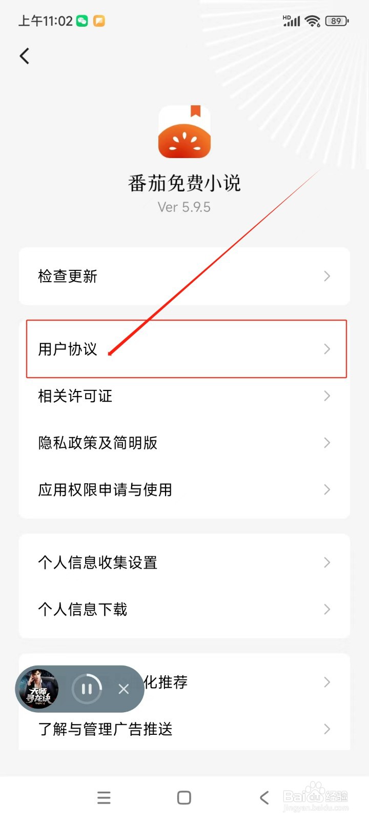 4、在关于番茄界面找到并点击“用户协议”,即可查看协议详细内容