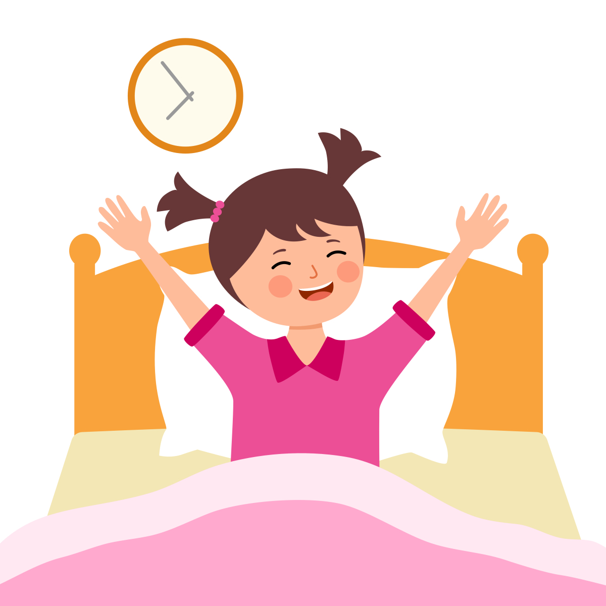 卡通风可爱女孩按时起床伸懒腰养成良好生活习惯儿童教育插画