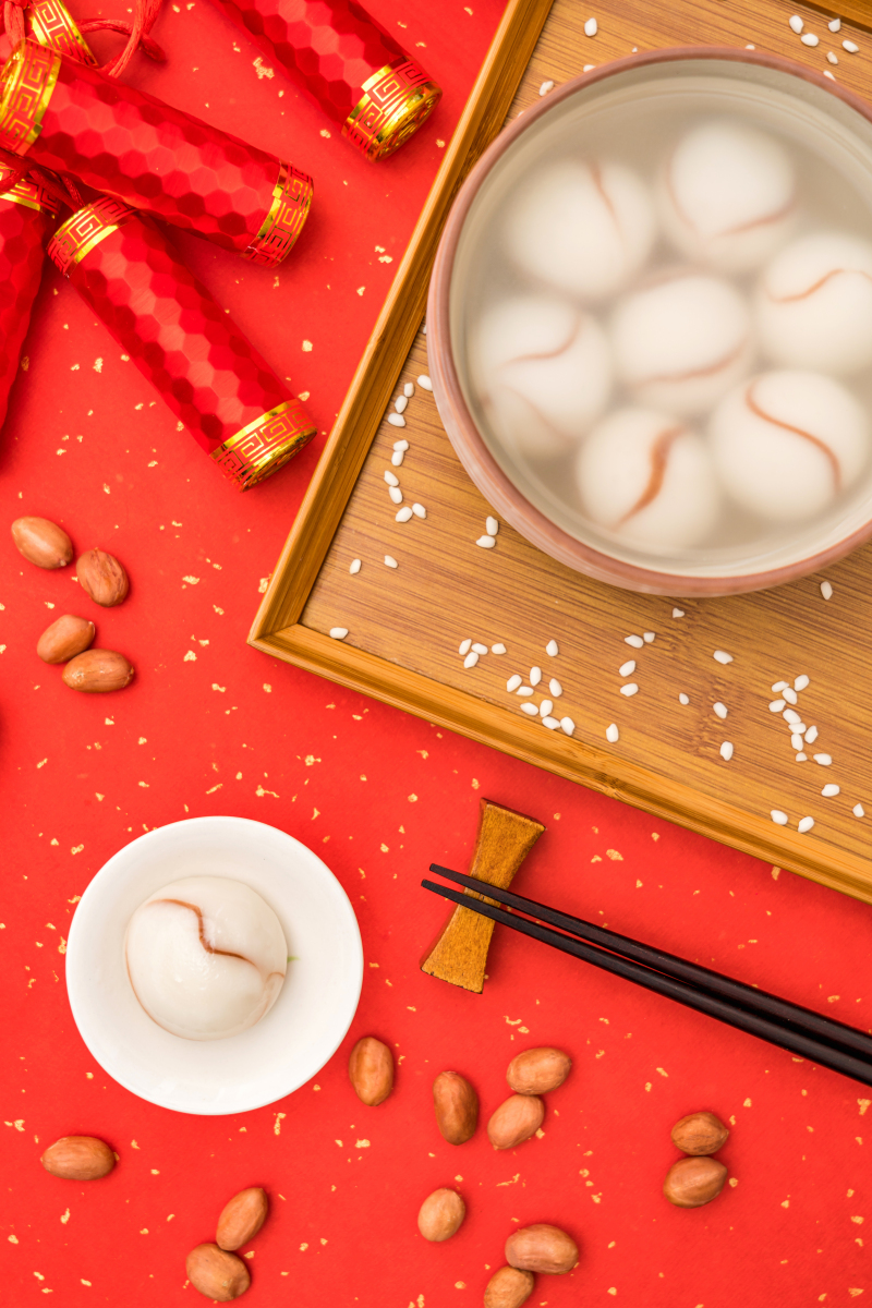 传统手工元宵配米酒:馅料丰富,口感软糯,米酒提味